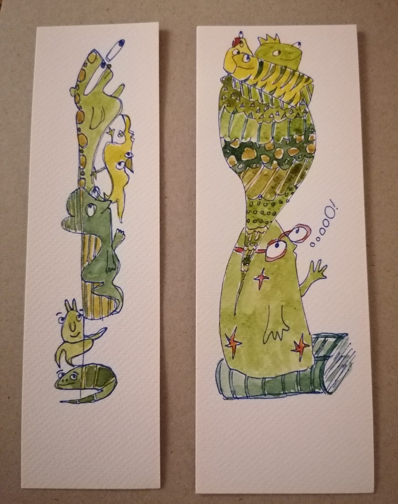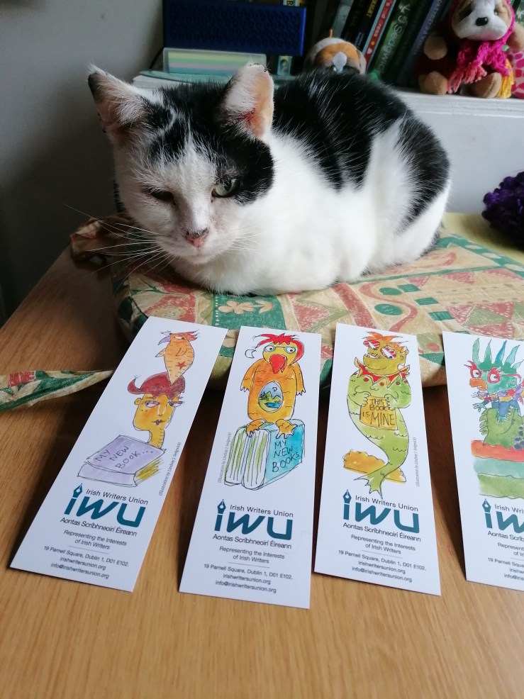 She was recently commissioned by the Irish Writers Union to design some unique bookmarks that would work as a business card for the union – and here’s what she came up with: